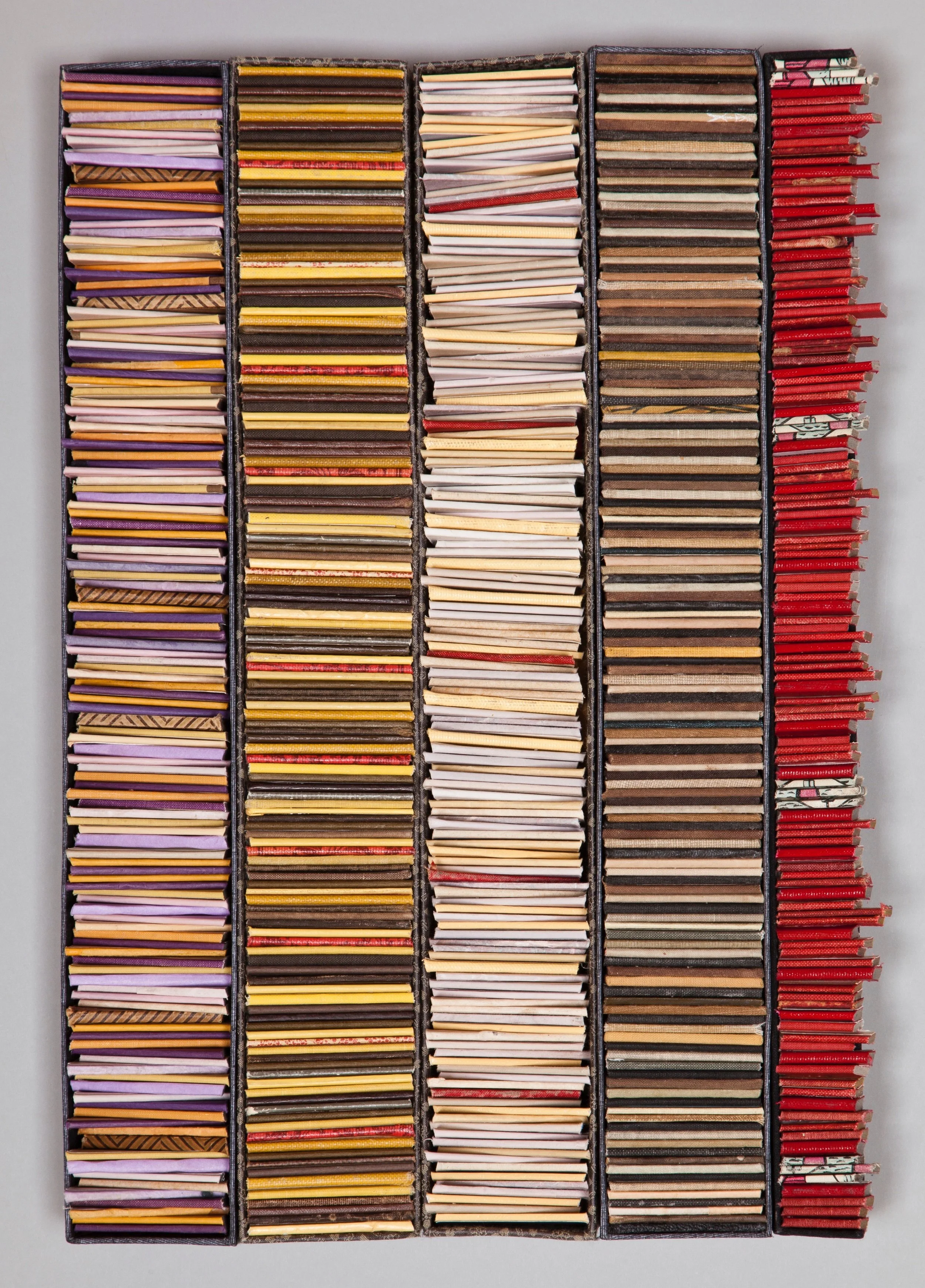 Brooke Holve contemplates the poetics of seeing in Cuts Make You., an exhibition of mixed media constructions, installations, and an artist book. Her work reflects an exploration of ‘cutting’ as process and form as she cuts to see and cuts to make. She is interested in how to apply process to a material and arrive to a form that refers back to its making. The work is informed by the changing role of the book as the world moves to primarily digital delivery systems. Discarded book remnants are the dominant material of this work.